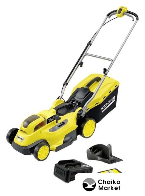 | Комплектация | - Аккумулятор- Быстрозарядное устройство Battery Power 18 В - Комплект для мульчирования- Нож- Травосборник- Ручка для переноски- Указатель уровня заполнения травосборника |