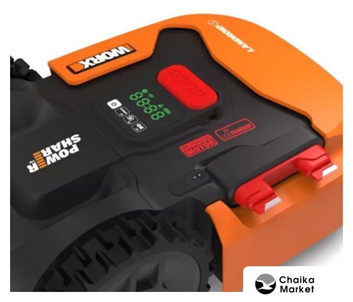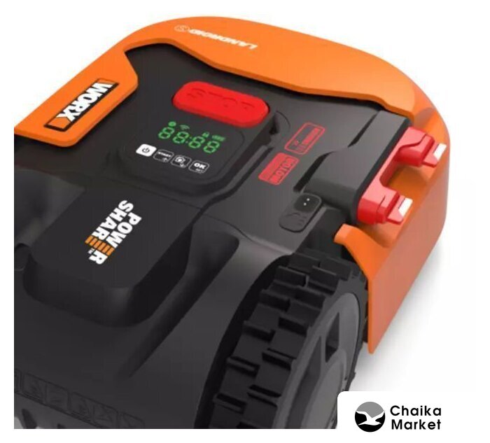 | Комплектация | В комплект поставки входят Соединители для ремонта проводов (2), Запасные лезвия крепятся винтами (9), Шестигранный ключ (1), Зарядная станция (1), Винты для зарядной станции (7), крючки (130), Блок питания (1), 100-метровый ограничительный провод (1), Батарея PowerShare 20 В, 2 Ач (1), Ограничительные дальномеры (2), Линейка Л. Бертельсена (1) |