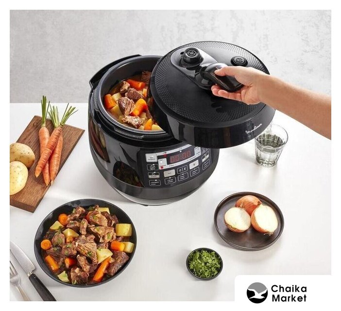 мультиварка-скороварка, объем 6 л, покрытие чаши антипригарное, мощность 1000 Вт, 12 программ, пароварка