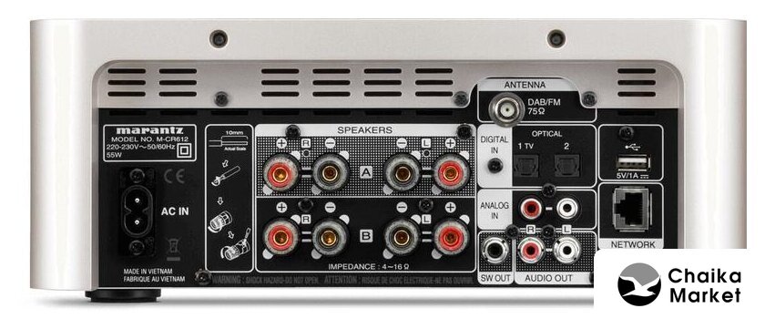 сетевой CD-проигрыватель, цифровой дисплей, мощность 25 Вт при 8 Ом, мощность 35 Вт при 4 Ом, управление через Android/iOS