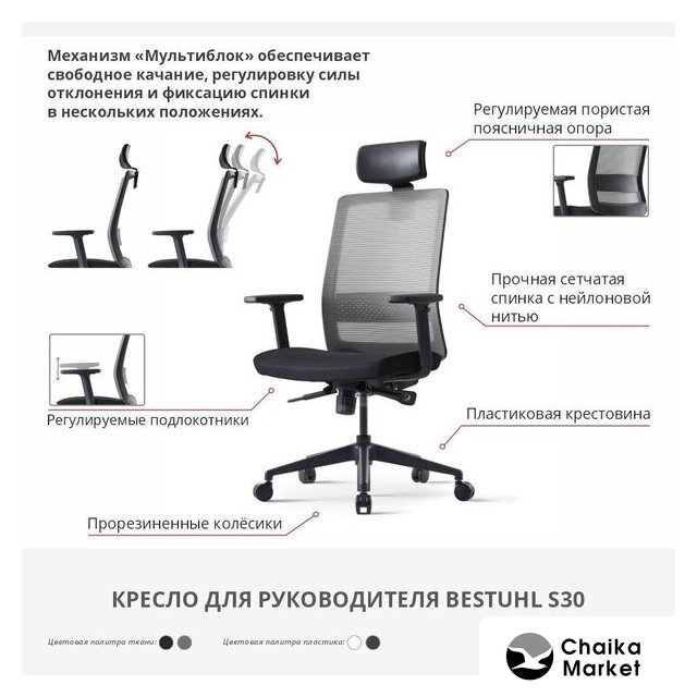 офисное кресло, механизм мультиблок, максимальная нагрузка 120 кг, ширина кресла 66.5 см