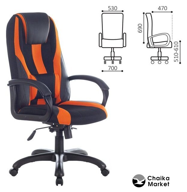 игровое (геймерское) кресло, спинка цельная, обивка: искусственная кожа, механизм мультиблок, максимальная нагрузка 300 кг, ширина кресла 65 см