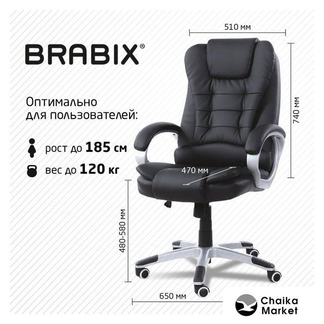 офисное кресло, спинка цельная, обивка: искусственная кожа, максимальная нагрузка 120 кг, ширина кресла 65 см