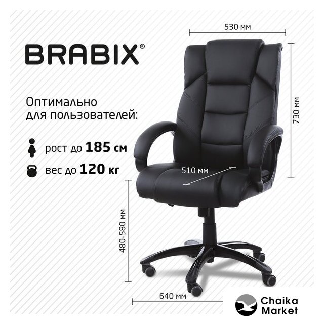офисное кресло, спинка цельная, обивка: искусственная кожа, максимальная нагрузка 120 кг, ширина кресла 66 см