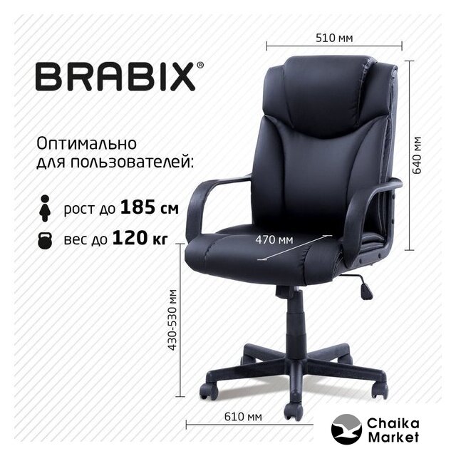 офисное кресло, спинка цельная, обивка: искусственная кожа, максимальная нагрузка 120 кг, ширина кресла 61 см