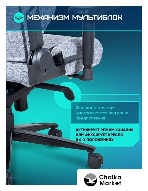 игровое (геймерское) кресло, механизм мультиблок, максимальная нагрузка 150 кг, ширина кресла 57 см