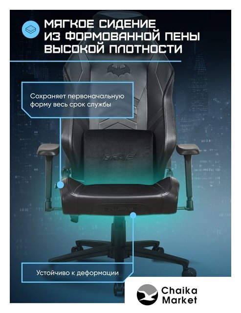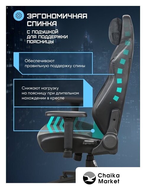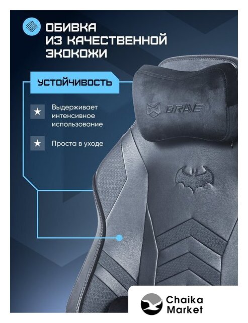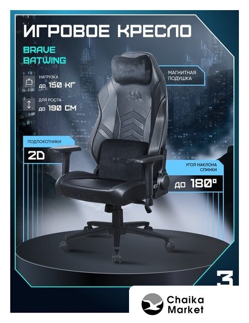 игровое (геймерское) кресло, спинка цельная, обивка: искусственная кожа, максимальная нагрузка 120 кг, ширина кресла 70 см