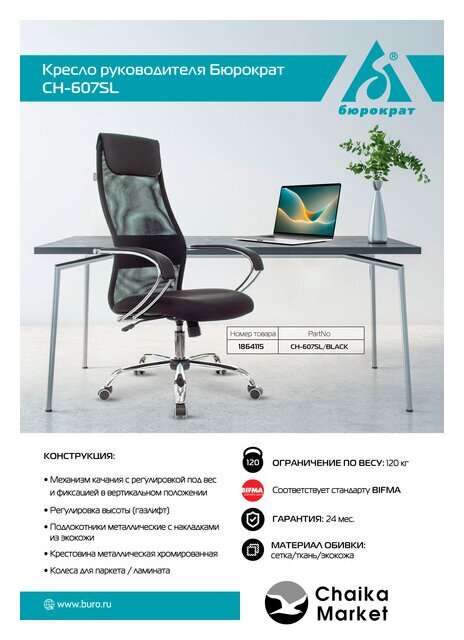 для руководителя, механизм DMS (Топ-Ган, Tilt), максимальная нагрузка 120 кг, ширина кресла 66.5 см