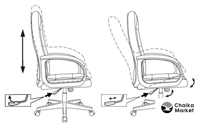 офисное кресло, механизм DMS (Топ-Ган, Tilt), максимальная нагрузка 120 кг, ширина кресла 64 см