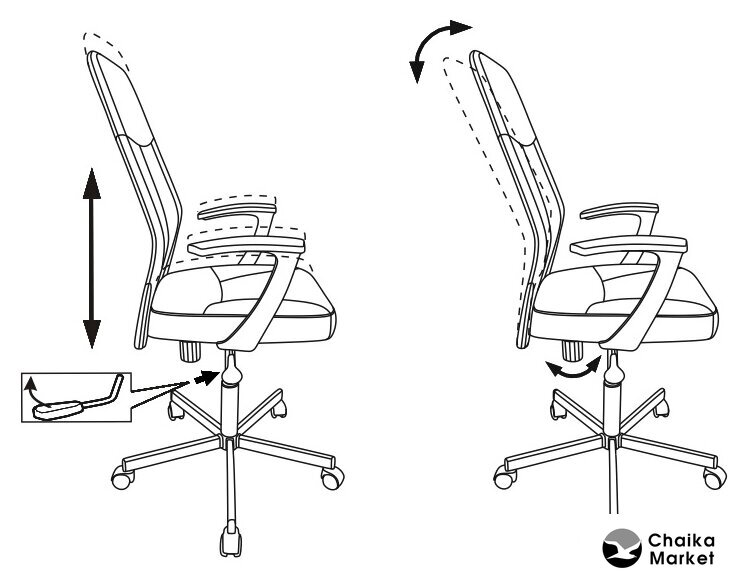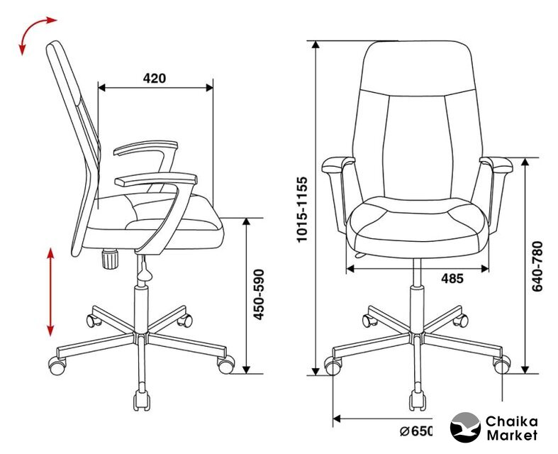 для персонала, спинка цельная, обивка: искусственная кожа, механизм DMS (Топ-Ган, Tilt), максимальная нагрузка 120 кг, ширина кресла 63 см