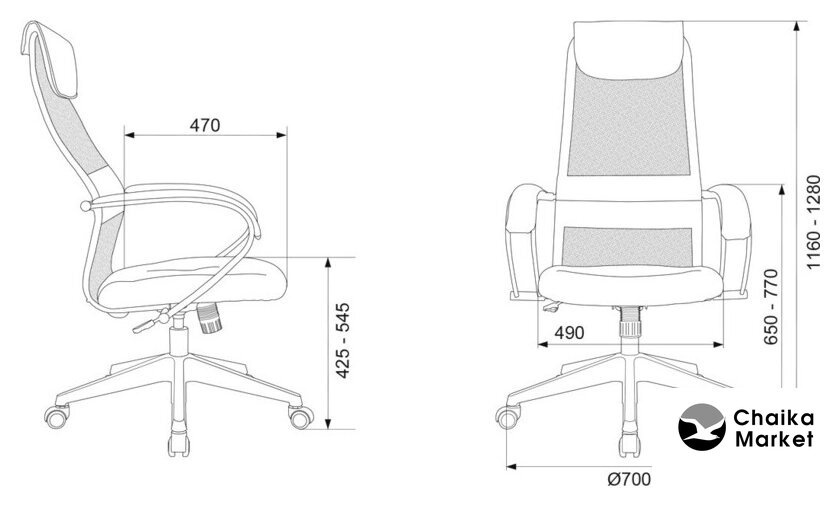 офисное кресло, спинка цельная, ширина кресла 63 см