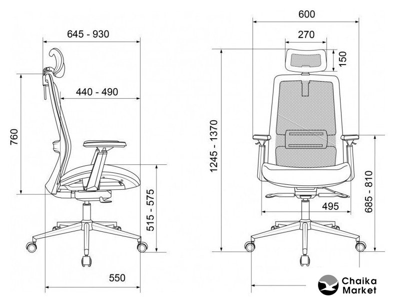 офисное кресло, спинка цельная, максимальная нагрузка 120 кг, ширина кресла 64 см