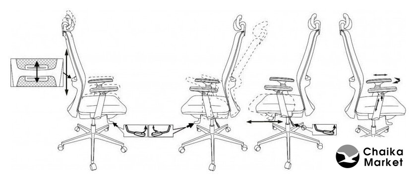 офисное кресло, спинка цельная, обивка: ткань, механизм синхромеханизм, максимальная нагрузка 150 кг, ширина кресла 73 см