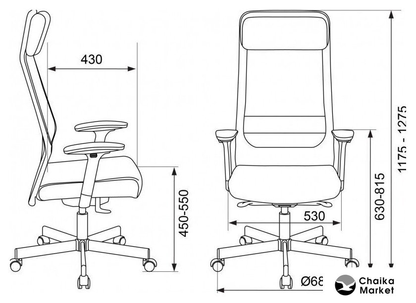 офисное кресло, механизм DMS (Топ-Ган, Tilt), максимальная нагрузка 120 кг, ширина кресла 68 см