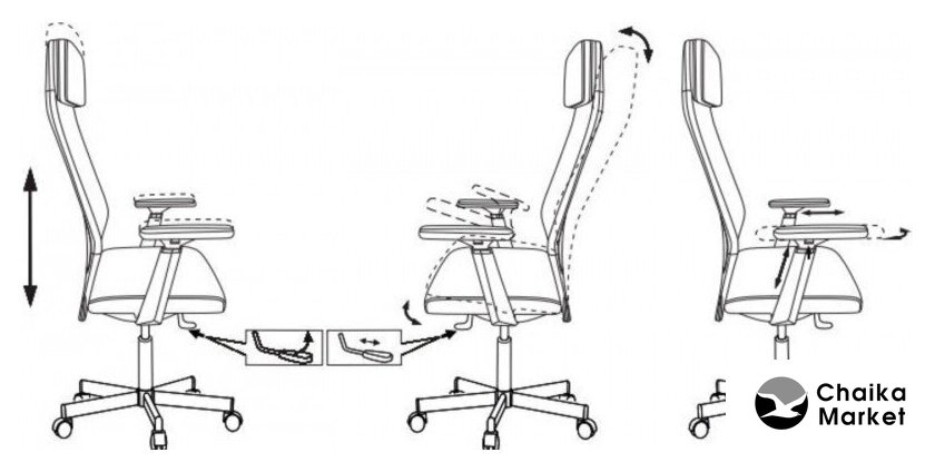 офисное кресло, механизм DMS (Топ-Ган, Tilt), максимальная нагрузка 100 кг, ширина кресла 61 см