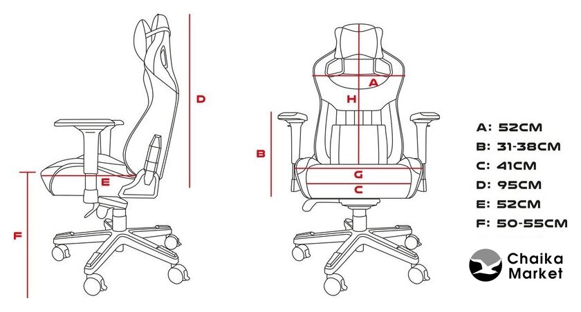 игровое (геймерское) кресло, механизм DMS (Топ-Ган, Tilt), максимальная нагрузка 130 кг, ширина кресла 67 см