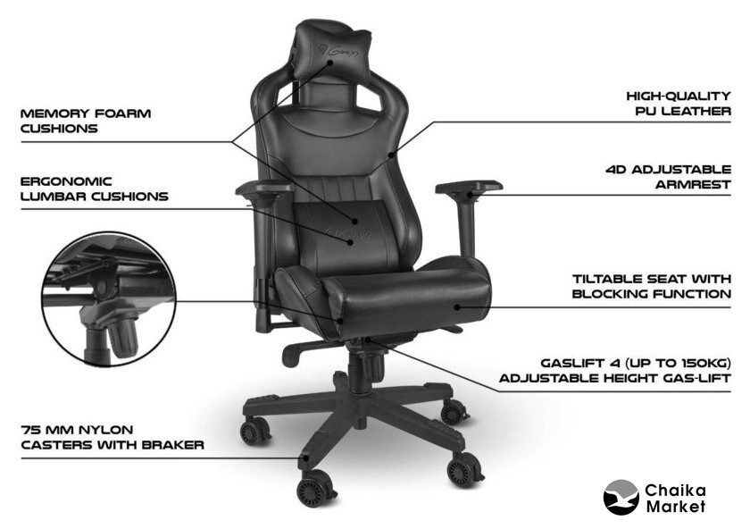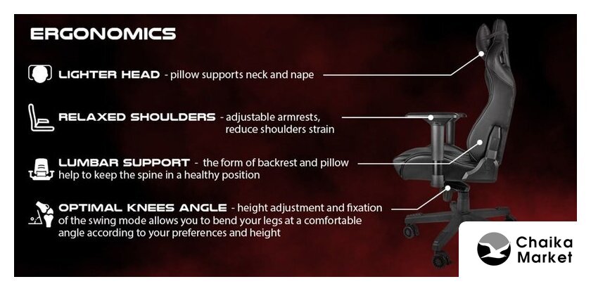 игровое (геймерское) кресло, максимальная нагрузка 120 кг, ширина кресла 61 см