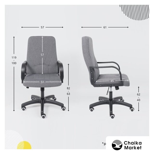 офисное кресло, механизм DMS (Топ-Ган, Tilt), ширина кресла 64 см
