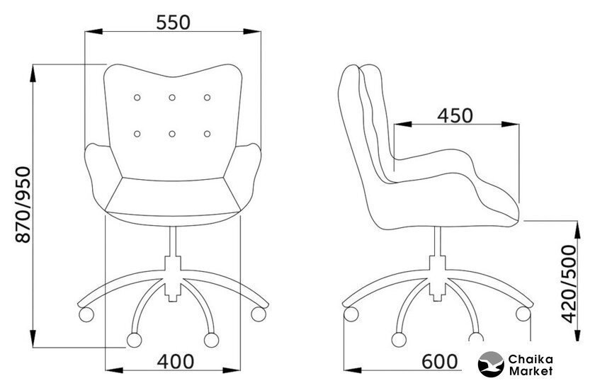 офисное кресло, спинка цельная, максимальная нагрузка 120 кг, ширина кресла 64 см