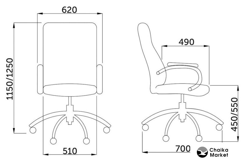 офисное кресло, спинка цельная, максимальная нагрузка 200 кг, ширина кресла 70 см