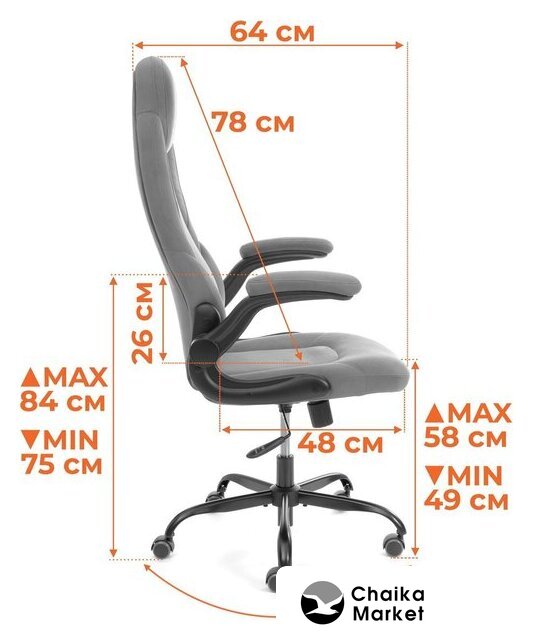 офисное кресло, механизм DMS (Топ-Ган, Tilt), максимальная нагрузка 120 кг, ширина кресла 64 см