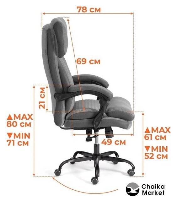 офисное кресло, механизм DMS (Топ-Ган, Tilt), максимальная нагрузка 200 кг, ширина кресла 74 см