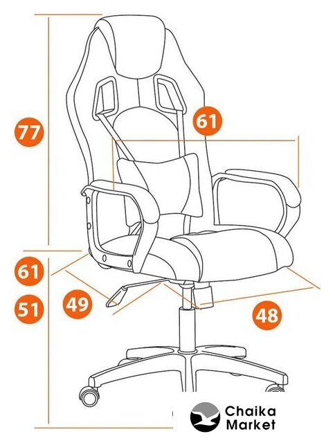 игровое (геймерское) кресло, спинка цельная, максимальная нагрузка 120 кг, ширина кресла 66 см