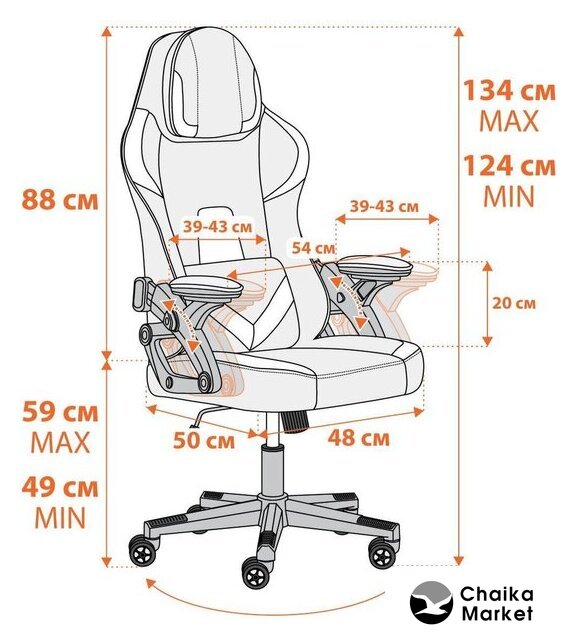 игровое (геймерское) кресло, спинка цельная, обивка: искусственная кожа, ширина кресла 49 см
