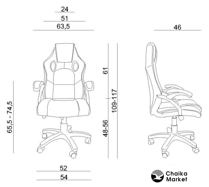 игровое (геймерское) кресло, спинка цельная, обивка: искусственная кожа, максимальная нагрузка 120 кг, ширина кресла 65 см