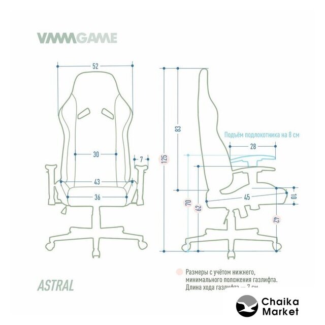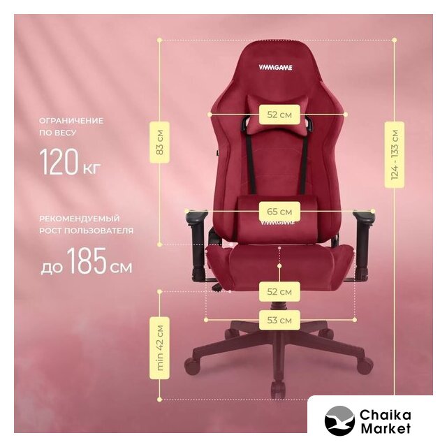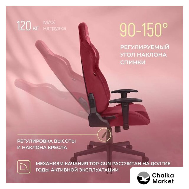 игровое (геймерское) кресло, механизм DMS (Топ-Ган, Tilt), максимальная нагрузка 150 кг, ширина кресла 74 см