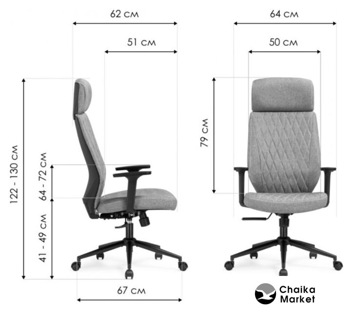 офисное кресло, механизм DMS (Топ-Ган, Tilt), максимальная нагрузка 120 кг, ширина кресла 64 см