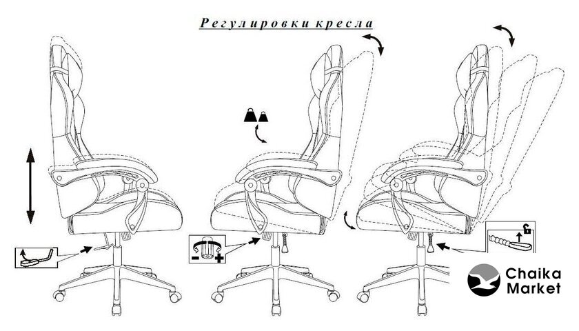 игровое (геймерское) кресло, спинка цельная, обивка: искусственная кожа, механизм мультиблок, максимальная нагрузка 300 кг, ширина кресла 65 см