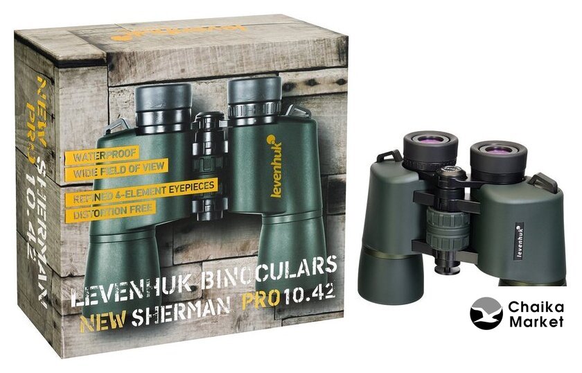 бинокль, полевой, 10-кратный, линза 50 мм, угол зрения 6.5°