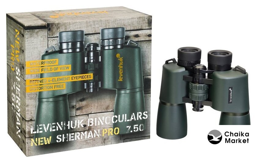 бинокль, полевой, 10-кратный, линза 50 мм, угол зрения 6.5°