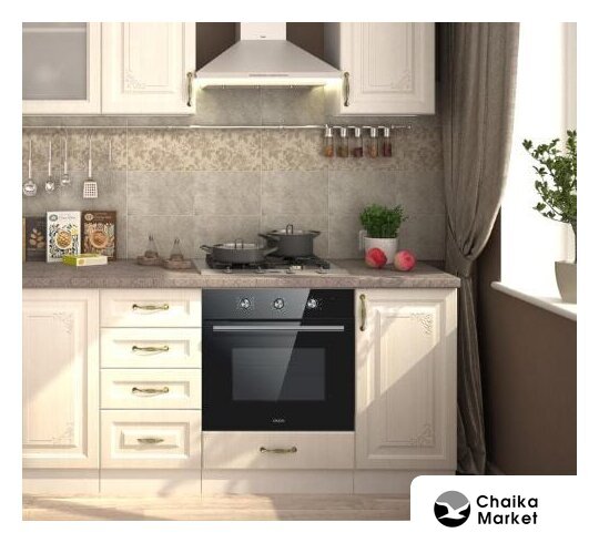 электрический с конвекцией, объем 60 л, утапливаемые переключатели, 6 режимов, очистка паровая, направляющие проволочные