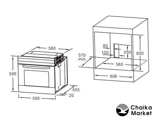электрический с конвекцией, объем 70 л, утапливаемые переключатели, 7 режимов, очистка паровая, 2 стекла в дверце, направляющие проволочные