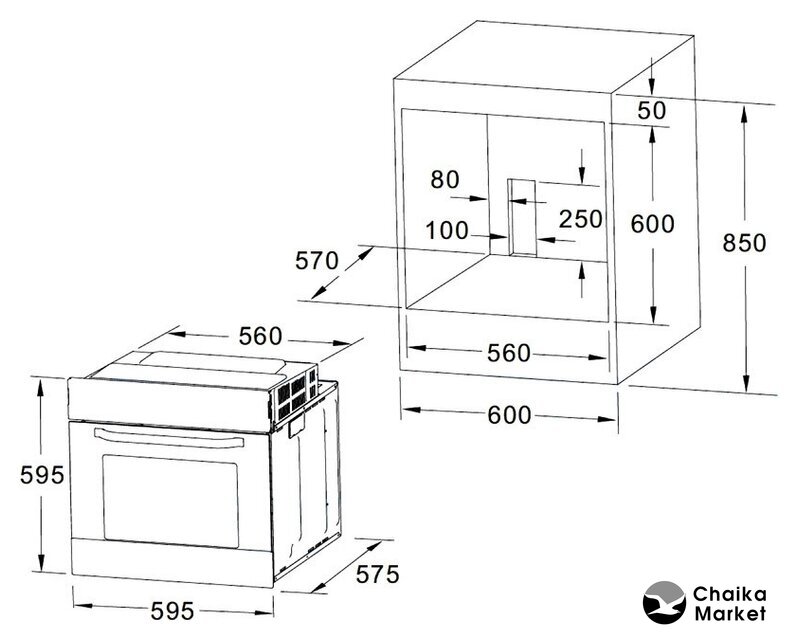 электрический с конвекцией, объем 58 л, 6 режимов, очистка ручная, проволочные направляющие, энергопотребление A