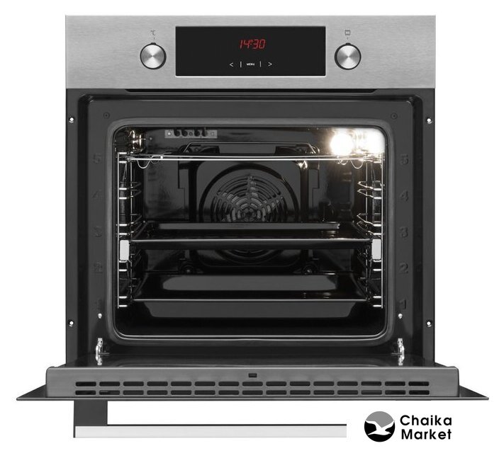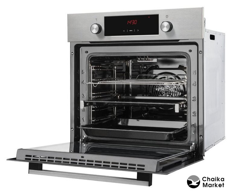 электрический с конвекцией, объем 66 л, утапливаемые переключатели, 8 режимов, очистка ручная, 3 стекла в дверце, направляющие проволочные