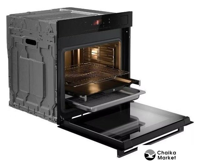 электрический с конвекцией, объем 68 л, 16 режимов, очистка паровая, 3 стекла в дверце, направляющие проволочные + телескопические (1 уровень)