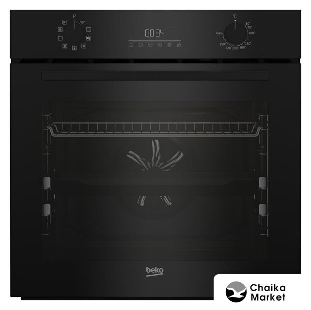 электрический с конвекцией, объем 75 л, утапливаемые переключатели, 8 режимов, очистка ручная, 3 стекла в дверце, направляющие проволочные + телескопические (1 уровень), термощуп