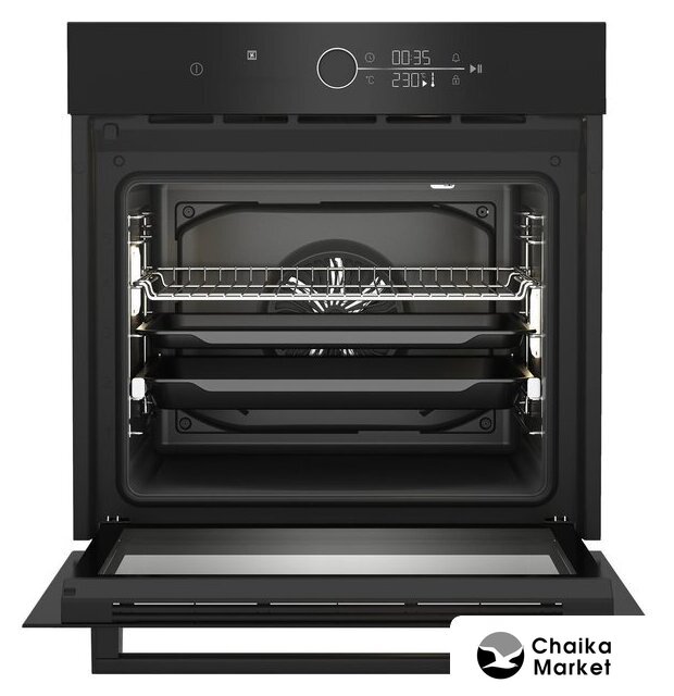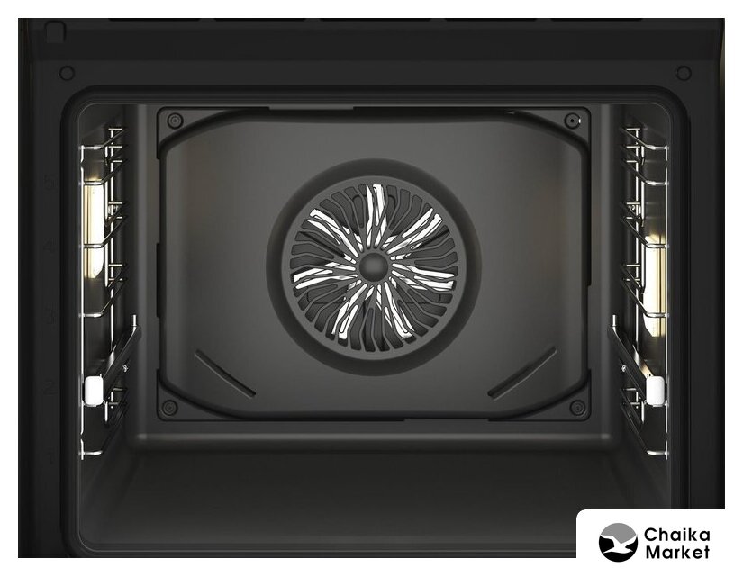 электрический с конвекцией, объем 71 л, 5 режимов, автопрограммы, очистка пиролитическая + паровая, 4 стекла в дверце, направляющие проволочные