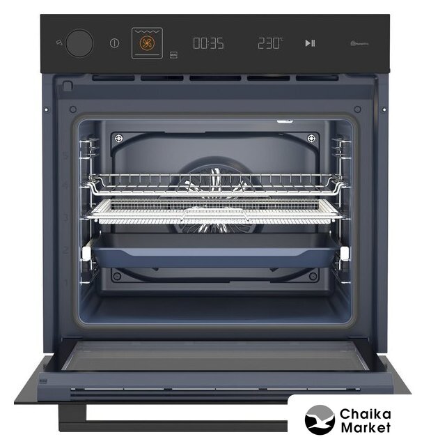 электрический с конвекцией, микроволны, объем 50 л, 9 режимов, автопрограммы, очистка паровая, 3 стекла в дверце, направляющие проволочные