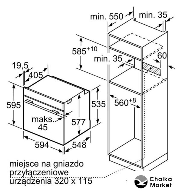 Размеры ниши для встраивания |