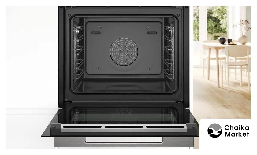 электрический с конвекцией, объем 68 л, 19 режимов, автопрограммы, очистка пиролитическая, 4 стекла в дверце, направляющие проволочные + телескопические (1 уровень), термощуп