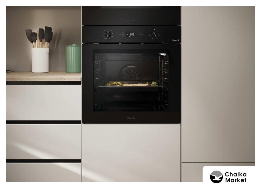 электрический с конвекцией, объем 72 л, 8 режимов, очистка паровая, проволочные направляющие, энергопотребление A