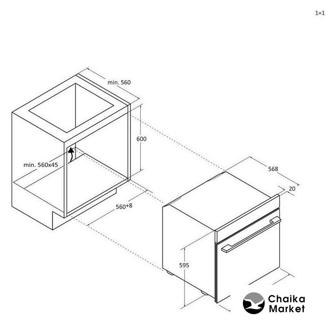электрический с конвекцией, объем 48 л, утапливаемые переключатели, 8 режимов, очистка паровая, 3 стекла в дверце, направляющие проволочные