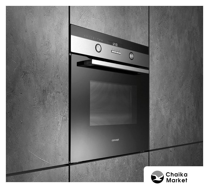 электрический с конвекцией, объем 48 л, утапливаемые переключатели, 8 режимов, очистка паровая, 3 стекла в дверце, направляющие проволочные