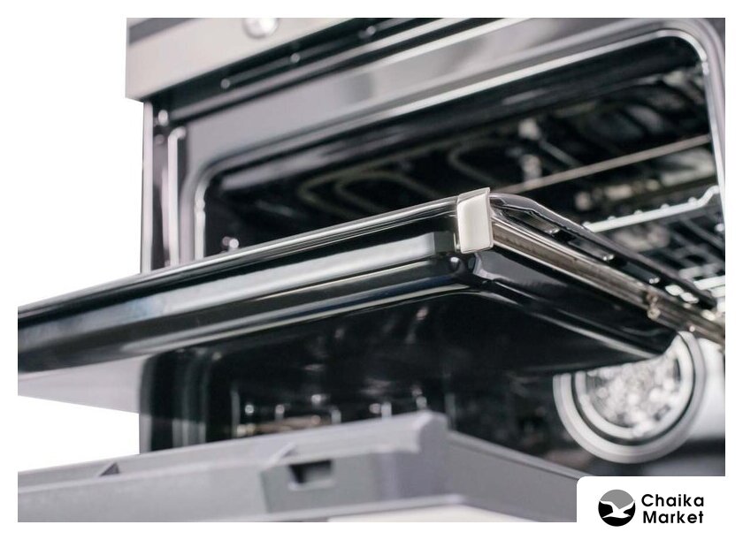 электрический с конвекцией, приготовление на пару, объем 77 л, 10 режимов, очистка ручная, 2 стекла в дверце, направляющие проволочные + телескопические (2 уровня)