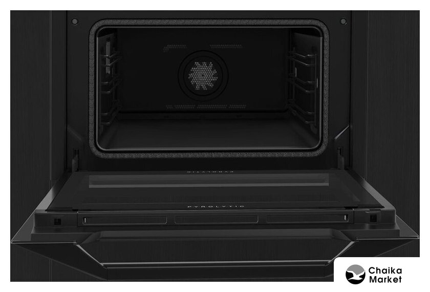электрический с конвекцией, микроволны, объем 67 л, 17 режимов, автопрограммы, очистка пиролитическая, направляющие проволочные + телескопические (1 уровень)
