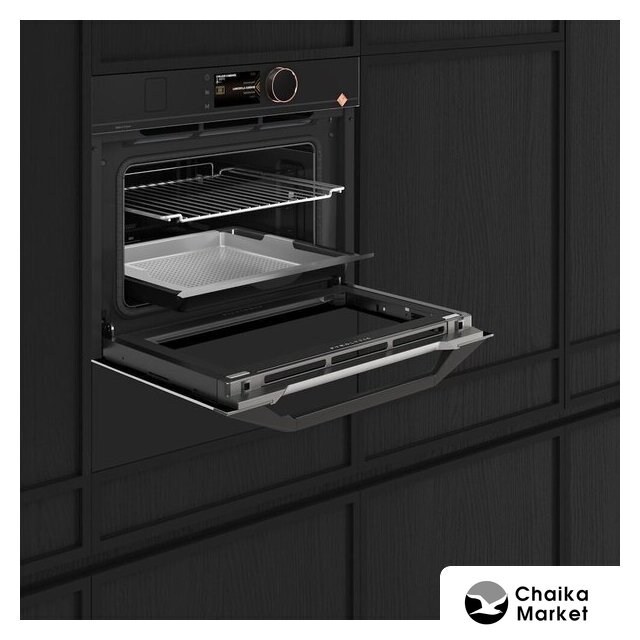 электрический с конвекцией, приготовление на пару, объем 68 л, 28 режимов, автопрограммы, очистка пиролитическая, 4 стекла в дверце, направляющие проволочные + телескопические (1 уровень), термощуп
